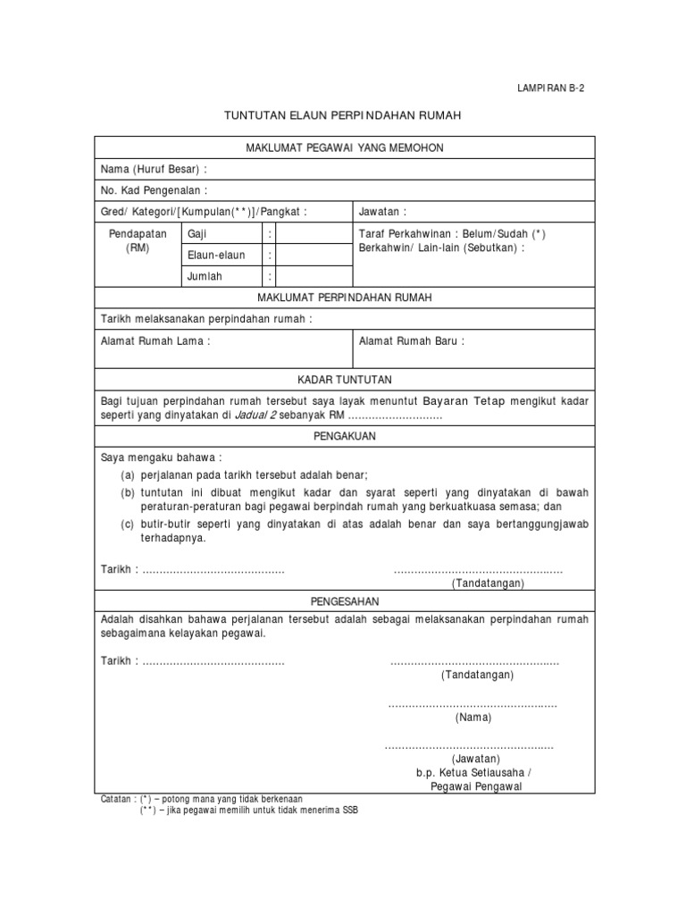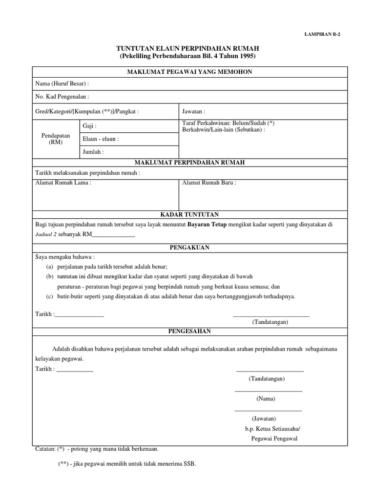 Borang Tuntutan Elaun Pindah Rumah Pdf
